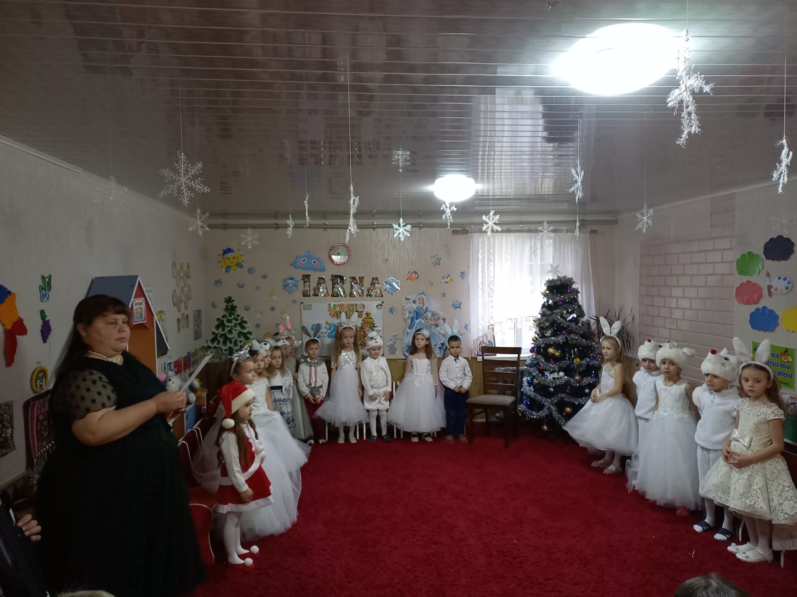 Pentru a trăi din plin sărbătorile de iarnă am pregătit copiilor din grupa Îngerașii o sărbătoare dublă. Distracția a început cu sosirea oaspeților dragi Alba ca Zăpada, Moș Crăciun și Iepurilă. Apoi am continuat cu un matineu cu genericul “BUCURIILE IERNII”. Copiii au recitat poezii, au cântat, au dansat, au primit cadouri. Am petrecut sărbătorile cu multă distracție, veselie și multe emoții pozitive.