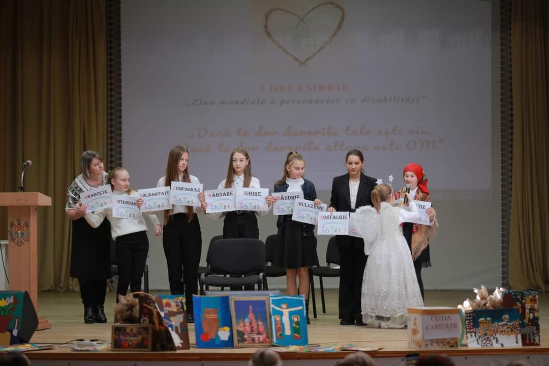 În data de 04.12.2023, am participat la Activitatea de sensibilizare, dedicată copiilor cu dizabilităţi cu tema: „Dacă te dor durerile tale, eşti viu”, „Dacă te dor durerile altora, eşti OM”, organizată de către Asistenţa Psihopedagogică a Direcţiei Generale Educaţie şi Cultură Făleşti, desfăşurată în incinta Palatului de Cultură „Mihai Volontir”.